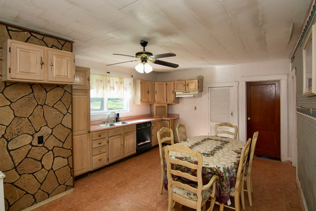 Built about 1940, the McKinney Homeplace was located on a knoll overlooking Barker’s Creek and the one-lane road that follows the stream into the mountains. The three-bedroom, one-bath, 1116-square-foot home is one story and includes a full basement. Two of its bedrooms, the living room, and an enclosed front porch face the stream and accommodate a peaceful night’s sleep to the sound of water among cobbles. The property lies in between two state-paved access roads, Mills Grocery Rd and Peaks Ridge Road.