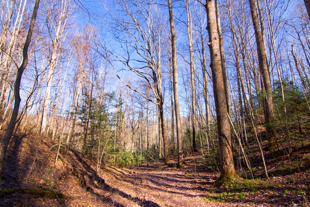 Approximately 90 percent of the property is in woodland that is perhaps best classified as a southern Appalachian Cove Forest, which is one of the most diverse forest types in North America. Many large trees tower over the forest on the upper property, including oaks, hickories, and tulip poplars. Several thickets of laurel and hemlock shade the lower hillside. An assessment of timber resources has not been performed.